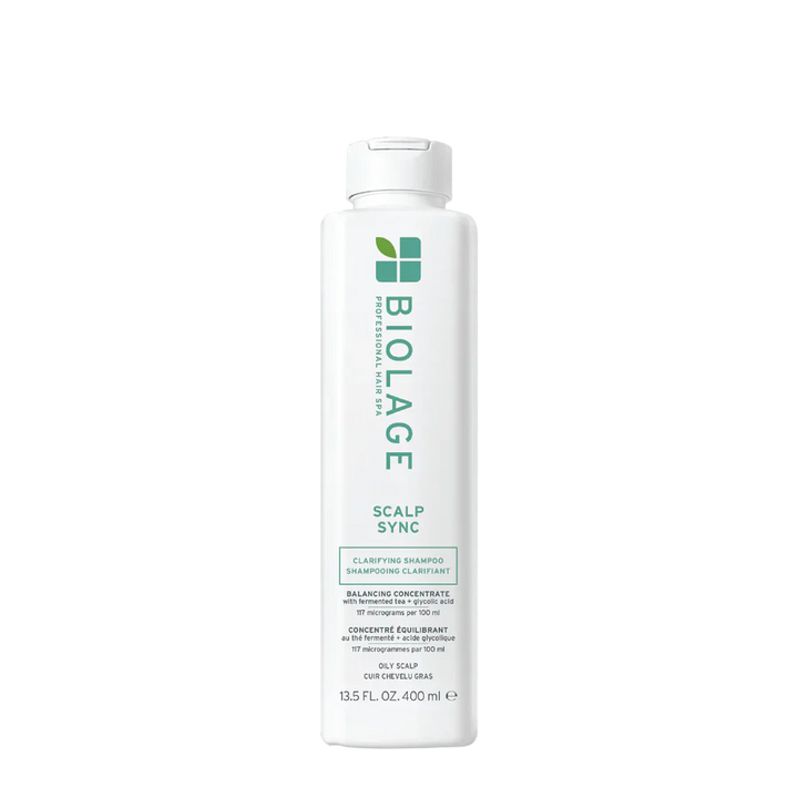 Biolage Scalp Sync Clarifying Shampoo gives your scalp the reset it deserves. This refreshing formula, infused with a fermented tea blend and filtered glycolic acid, gently exfoliates and removes product residue, oil buildup, and dead skin cells. It revitalizes your scalp and strands without stripping moisture, enhancing volume, shine, and softness. Ideal for color-treated hair, this purifying shampoo is free from parabens, silicones, mineral oil, and colorants.