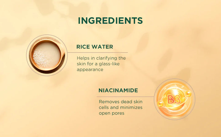 Rice Water + Niacinamide: Brightens, hydrates & refines skin texture