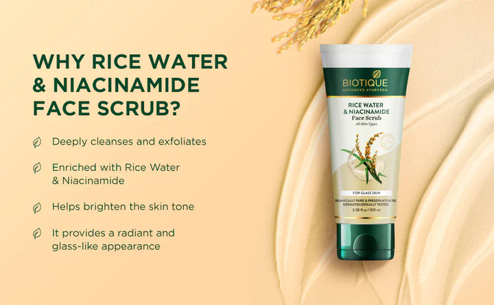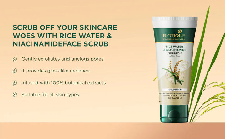 Biotique Rice Water & Niacinamide Gel Face Scrub – Glow Like Glass, Naturally!