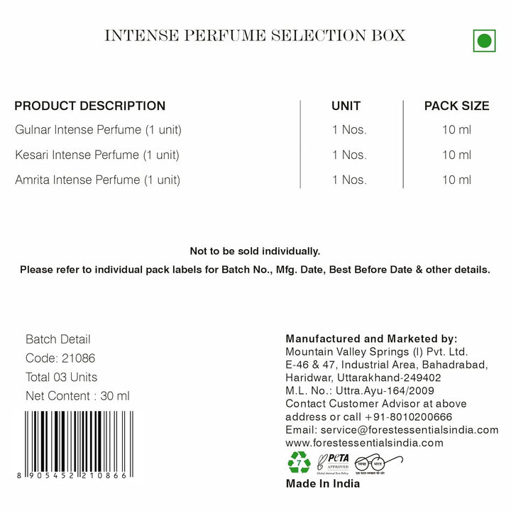 Discover the luxury of fine fragrances with the Forest Essentials Intense Perfume Selection Box. This exquisite collection features a curated set of premium perfumes, each crafted with pure essential oils to deliver a long-lasting, natural scent. Perfect for gifting or personal indulgence, this selection box offers a diverse range of floral, woody, and musky fragrances.