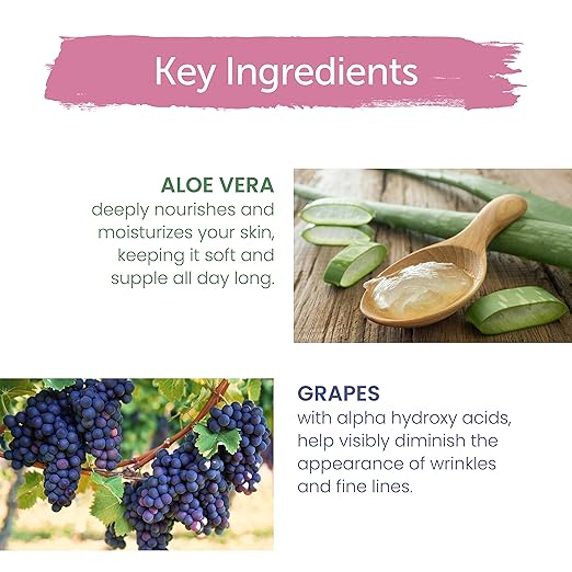 Grape Extracts: Rich in AHAs to reduce wrinkles and fine lines.