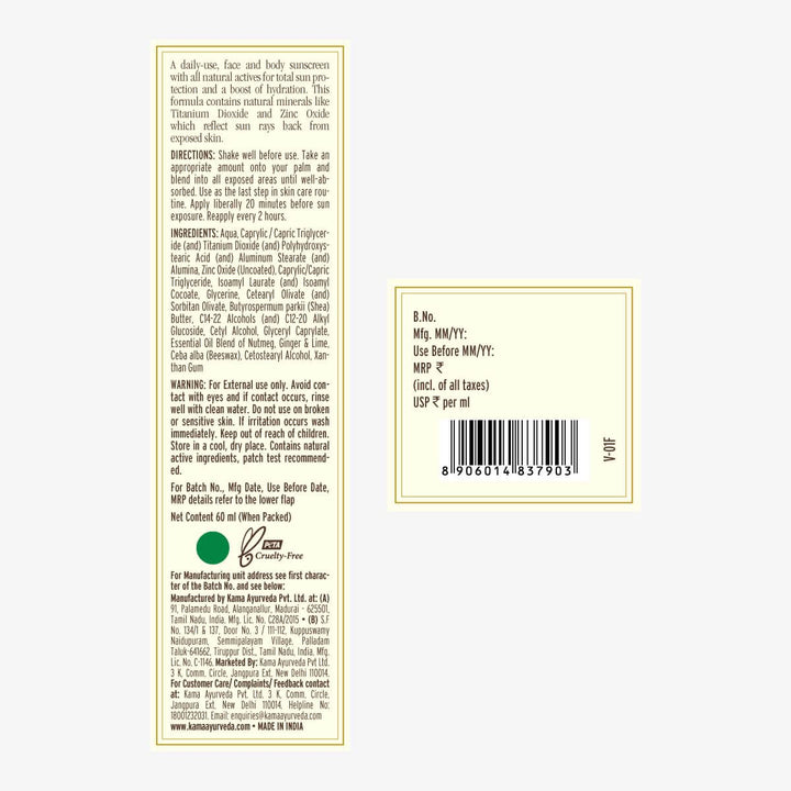 Kama Ayurveda - Natural Sun Protection | SPF 21 | UVA UVB | PA ++ | 60ml