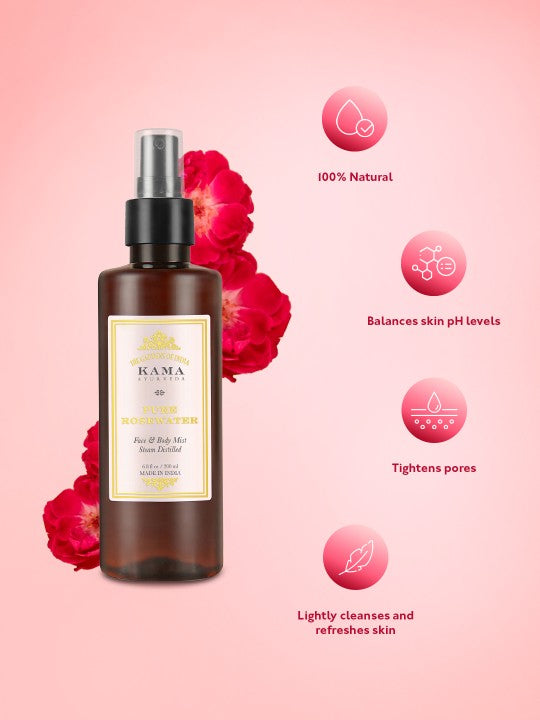 Experience the refreshing and hydrating benefits of KAMA AYURVEDA's Sustainable Pure Rose Water Face & Body Mist. This 50ml bottle of pure rose water is made from the finest roses, providing a gentle and natural mist that revitalizes and hydrates your skin. Ideal for use throughout the day, this mist can be used on both your face and body to give you a refreshing boost.