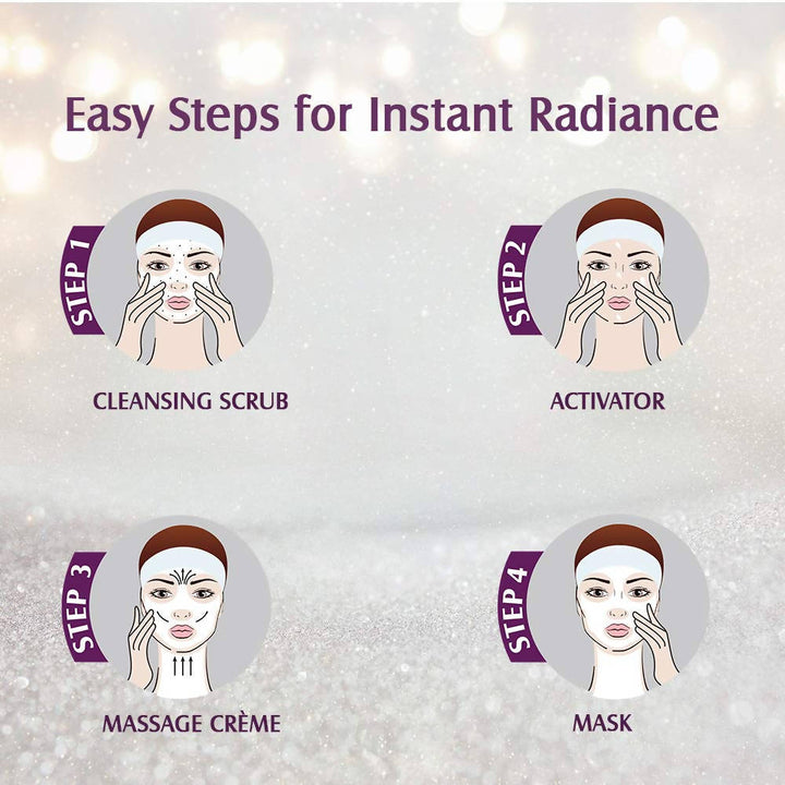 Lotus Herbals Radiant Diamond Facial Kit 37g is a luxurious skincare solution designed to provide your skin with a radiant and youthful glow. Infused with the goodness of diamond dust and other natural ingredients, this kit helps to rejuvenate and revitalize your skin, leaving it looking fresh and luminous. The kit includes an exfoliating cleanser, activator, massage creme, and mask, making it a complete facial treatment that you can enjoy in the comfort of your home.