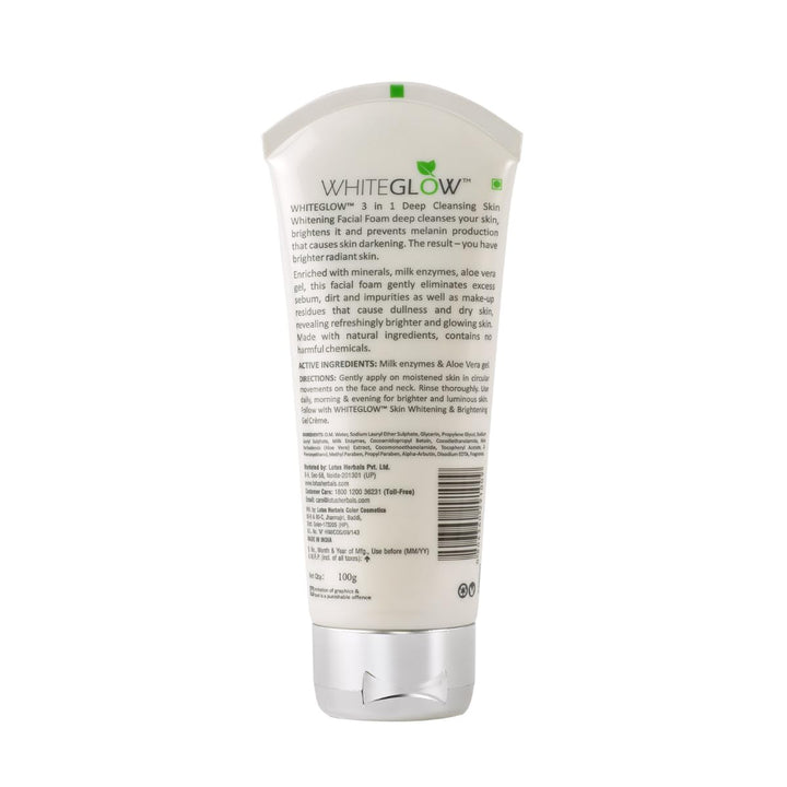 Lotus Herbals White Glow 3-in-1 Deep Cleansing Skin Whitening Facial Foam Face Wash 100 g