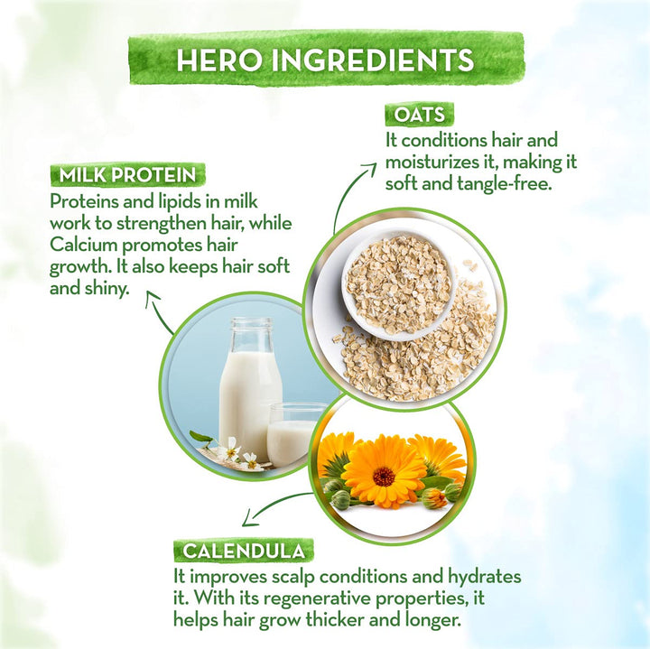 - Nourishes & Hydrates: Enriched with Milk Protein and Oats to nourish and hydrate the hair.