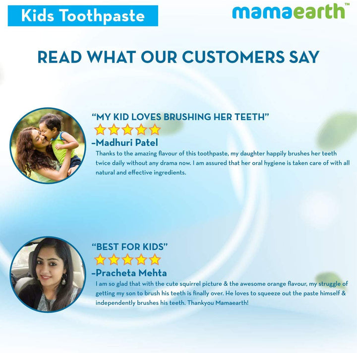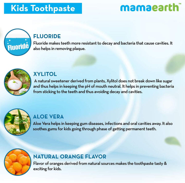 Introducing Mamaearth's Awesome Orange Toothpaste for Kids – the perfect blend of fun and functionality! Our toothpaste is specially formulated to ensure your child's teeth stay healthy and strong while they enjoy brushing. With a delightful orange flavor, it makes brushing a fun activity for your little ones.