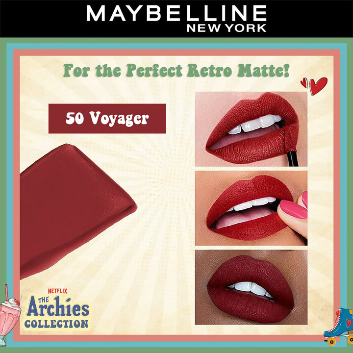 The Maybelline Super Stay Matte Ink Lipstick – Voyager (The Archies Collection) is now available at Kess Hair & Beauty Online Store. Enjoy fast shipping, secure checkout, and exclusive access to limited-edition beauty drops. Stock is limited—grab this collector’s item before it’s gone!