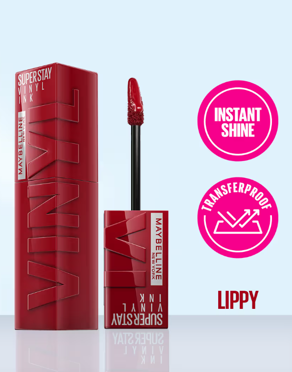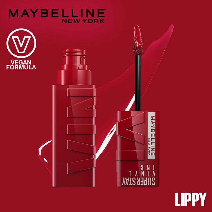 Get high-shine, long-lasting color with Maybelline New York Super Stay Vinyl Ink Liquid Lipstick in the shade 10 Lippy. This ultra-pigmented, transfer-proof formula ensures up to 16 hours of wear, delivering bold vinyl shine with a comfortable feel. Infused with Vitamin E and Aloe, it keeps lips hydrated and smooth while providing smudge-free, fade-resistant coverage.