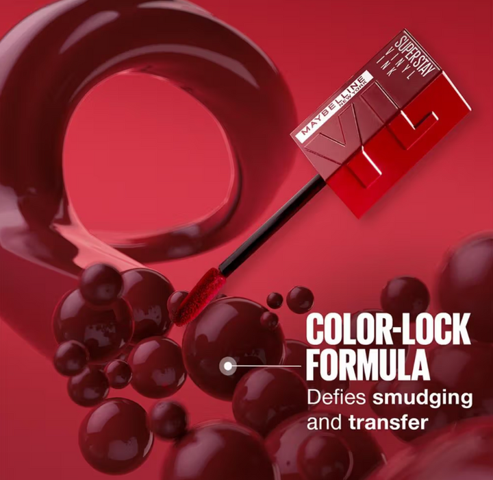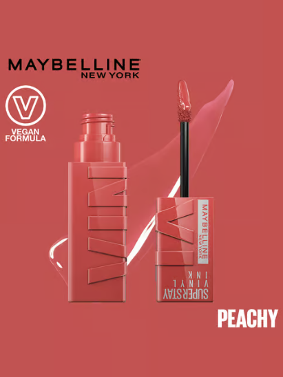 Experience high-shine, long-lasting color with Maybelline New York Super Stay Vinyl Ink Liquid Lipstick in the shade 15 Peachy. This ultra-pigmented, transfer-proof formula ensures up to 16 hours of wear, delivering bold vinyl shine with a comfortable feel. Infused with Vitamin E and Aloe, it keeps lips hydrated and smooth while providing smudge-free, fade-resistant coverage.