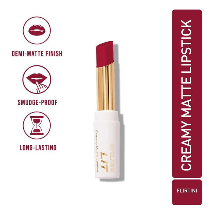 MyGlamm - LIT Creamy Matte Lipstick - Flirtini (Classic Deep Red Shade)
