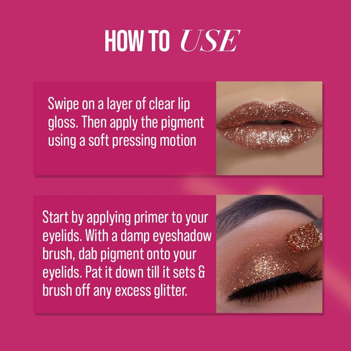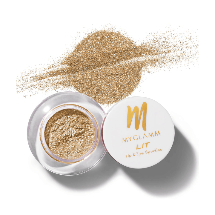 MyGlamm - LIT Lip & Eye Sparkles - Regina (Gold Shade) | Highly Concentrated Loose Shimmer Pigment 1.1g