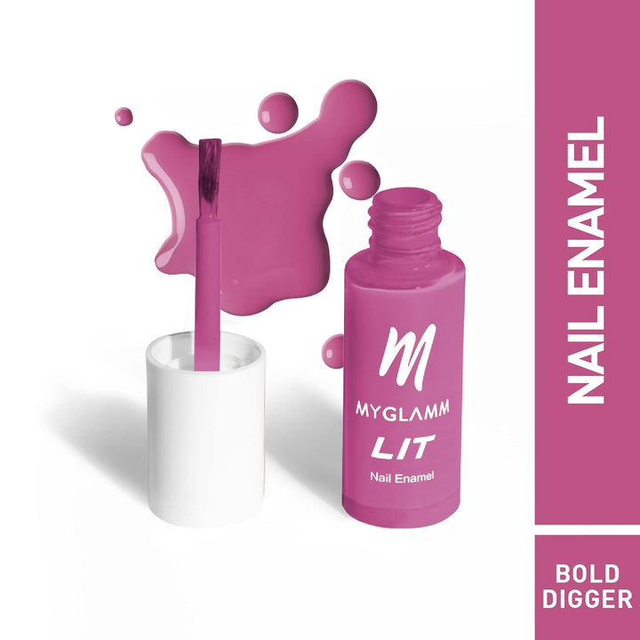 The MyGlamm LIT Long Lasting Nail Enamel - Bold Digger is available for purchase at Kess Hair & Beauty Online Store. Elevate your nail game with this high-quality, long-lasting nail enamel.