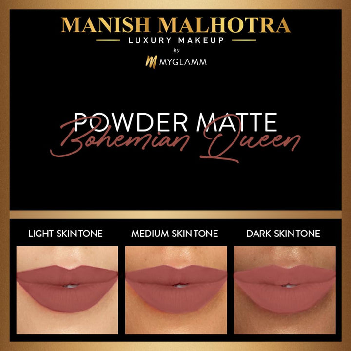 MyGlamm - Manish Malhotra Powder Matte Lipstick - Bohemian Queen (Brown Shade) | Water-resistant, Luxurious, Powder Matte Lip Colour