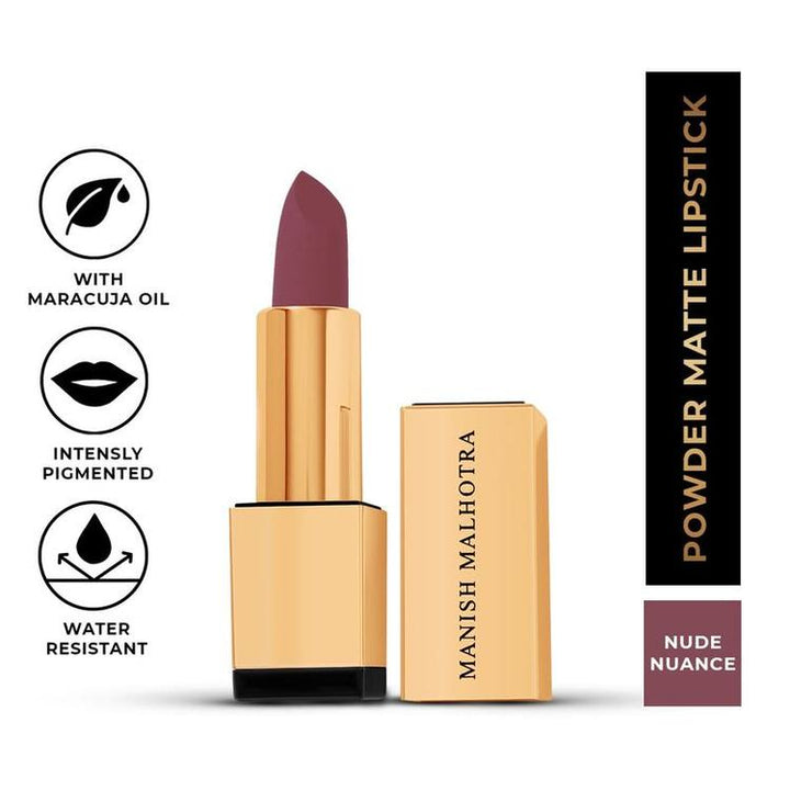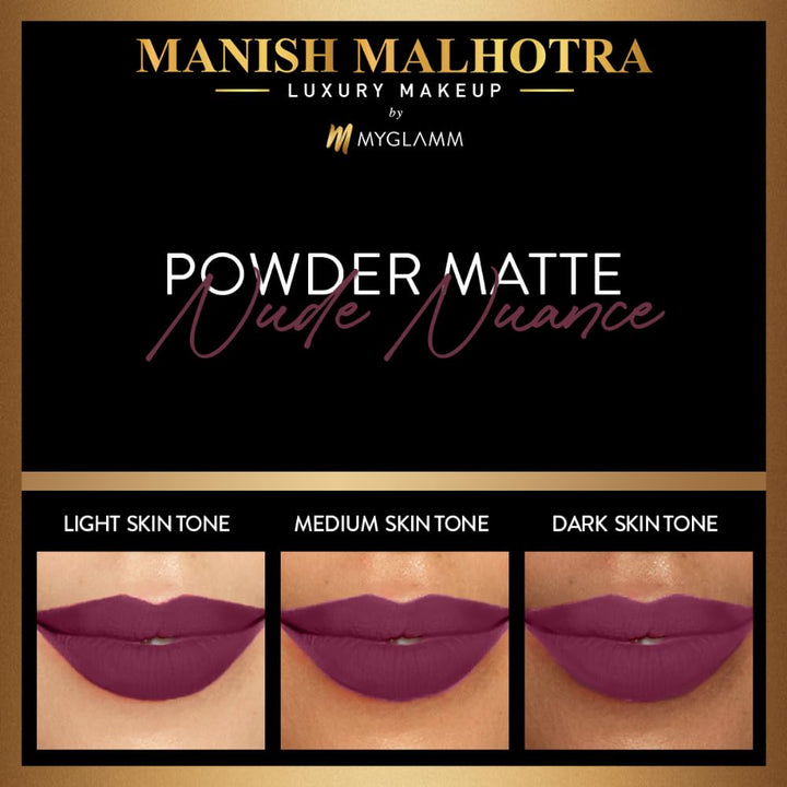MyGlamm - Manish Malhotra Powder Matte Lipstick - Nude Nuance (Purple with Brown Shade) | Water-resistant, Luxurious, Powder Matte Lip Colour
