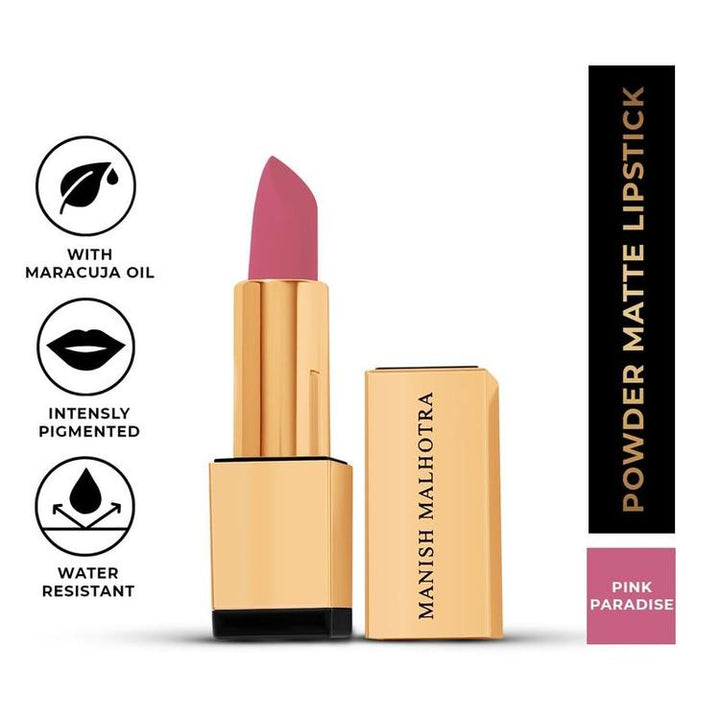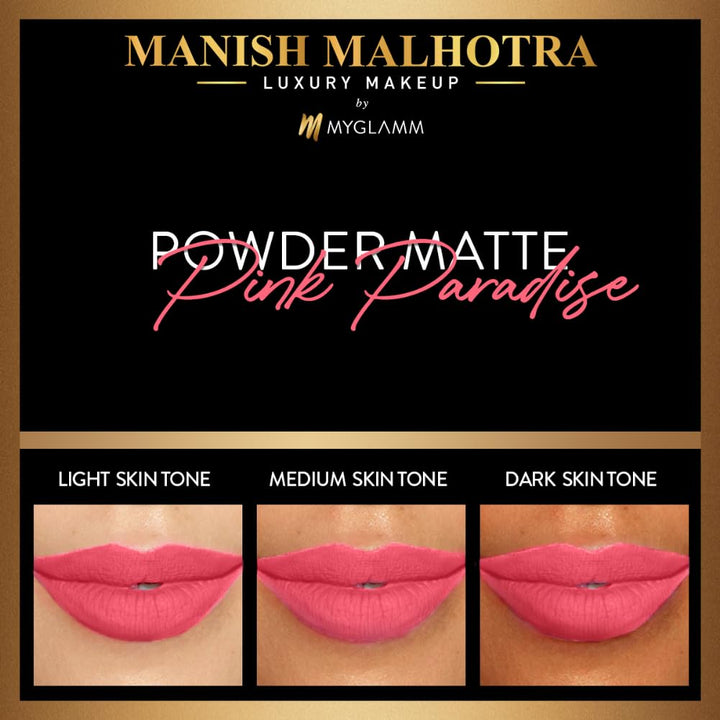 MyGlamm - Manish Malhotra Powder Matte Lipstick - Pink Paradise (Candy Pink Shade) | Water-resistant, Luxurious, Powder Matte Lip Colour