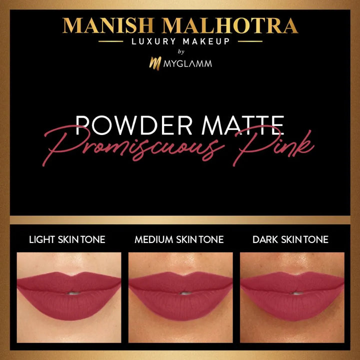 MyGlamm - Manish Malhotra Powder Matte Lipstick - Promiscuous Pink (Coral Pink Shade) | Water-resistant, Luxurious, Powder Matte Lip Colour