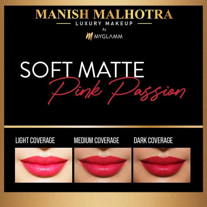 MyGlamm - Manish Malhotra Soft Matte Lipstick - Pink Passion (Pink Shade) | Long Lasting, Hydrating, Moisturising, Matte Finish Creamy Lipstick