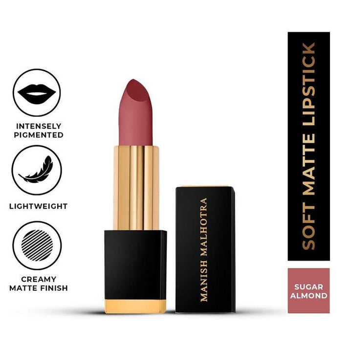 The Manish Malhotra Soft Matte Lipstick - Sugar Almond is available for purchase at Kess Hair & Beauty Online Store. Get yours today and experience the perfect blend of luxury, hydration, and long-lasting color.