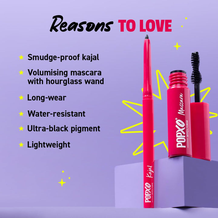 MyGlamm - POPxo After Dark Eye Makeup Kit | Black Eye Kajal & Mascara | Long Lasting, Smudge-proof, Volumising & Water Resistant