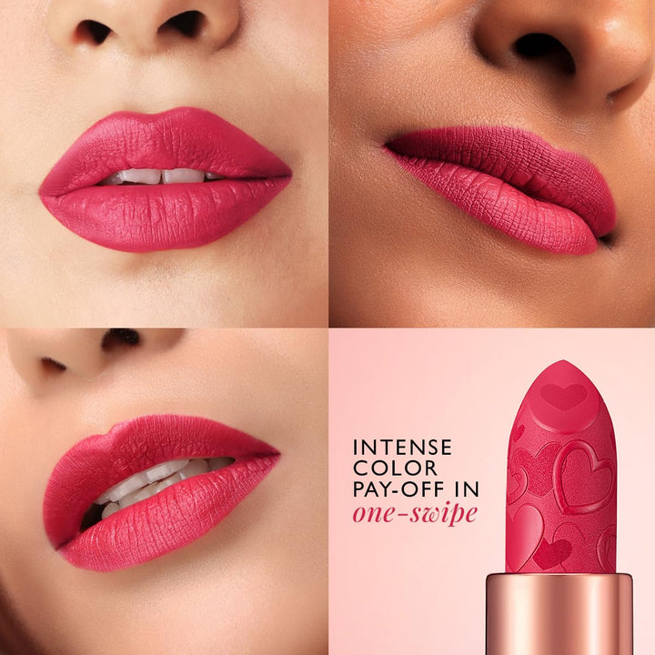 MyGlamm's POUT By Karan Johar Intense Matte Plumping Lipstick - Dramatic Pout is a deep pink shade designed to give your lips a bold, glamorous look with a matte finish. This highly pigmented, long-lasting lipstick delivers vibrant color in just one swipe while keeping your lips hydrated and plumped. Whether you're aiming for a statement lip or an everyday chic look, this lipstick ensures a smooth, comfortable wear.