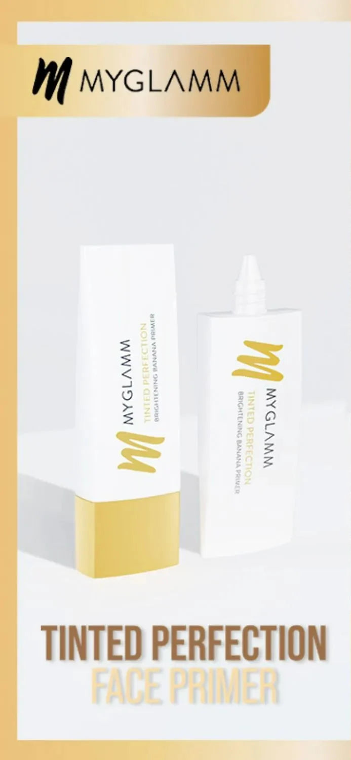 Achieve a flawless, radiant complexion with MyGlamm Tinted Perfection Brightening Banana Primer. This multi-action balmy formula instantly blurs pores, fine lines, and uneven texture, creating a silky-smooth canvas for makeup application. Infused with a yellow tint, it brightens the skin and conceals imperfections, ensuring a soft-focus effect for a naturally radiant look.