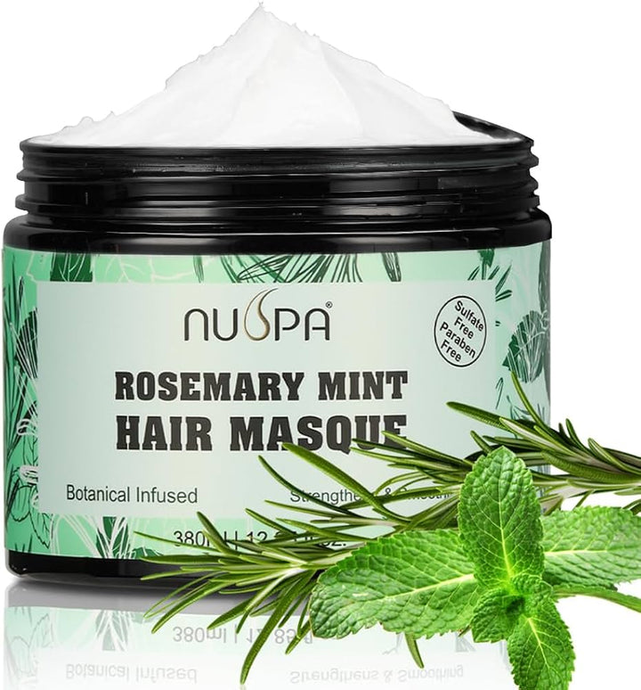 Give your hair a spa-like treatment with the Nuspa Rosemary Mint Hair Mask. Designed to repair and revitalize, this intensive conditioning mask deeply hydrates, restores elasticity, and strengthens strands from within. The refreshing rosemary mint aroma enhances the experience while leaving your hair soft, strong, and revitalized.