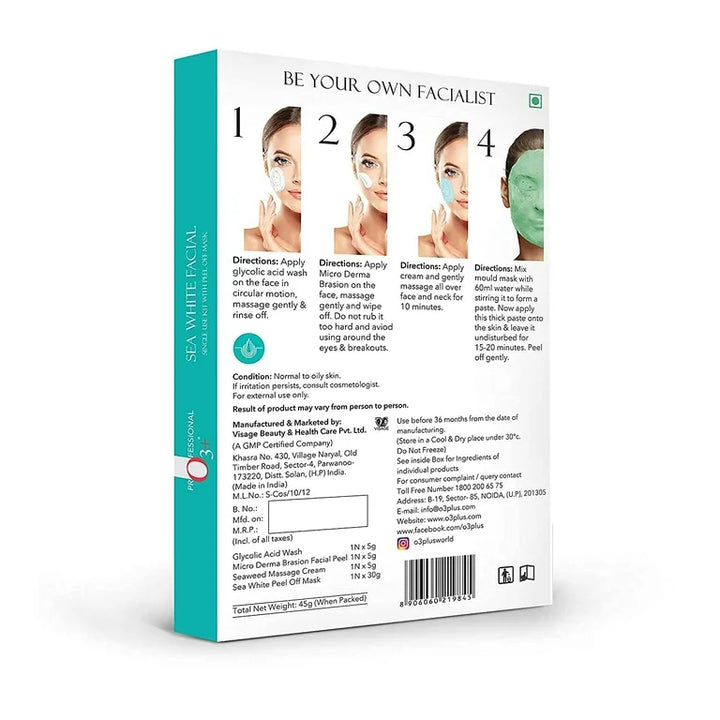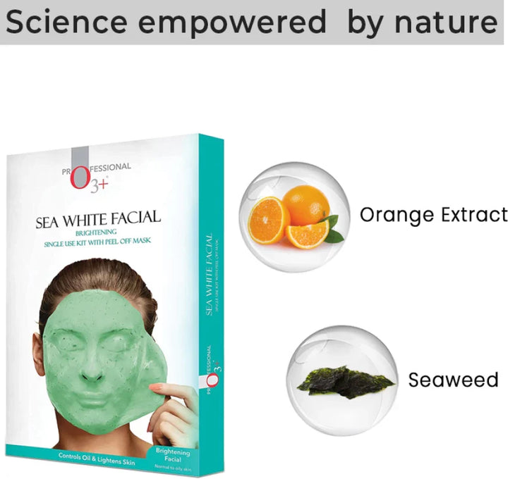 O3+ Sea White Facial Kit with Peel Off-Mask - Controls Oil & Lightens Skin - Single Use