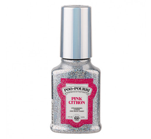 Hey there, sweet cheeks! A little sparkle when you go with Poo-Pourri Pink Citron Toilet Spray, a sweet blend of strawberry, citron and rock candy in a sparkling bottle. This is the before-you-go toilet spray which eliminates bathroom odour before it begins. Simply shake bottle, spray into toilet and Poo-Pourri traps odour. This amazing blend with essential oils actually leaves the toilet smelling better than you found it. Spritz, poo, sniff.
