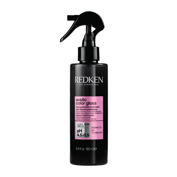For maximum color protection and shine, Redken Acidic Color Gloss Heat Protection Leave-In 190ml delivers a professional-grade gloss while shielding hair from heat damage up to 230°C. Its acidic pH-balanced formula (4.5-5.5) works to restore hair strength, seal the cuticle, and lock in color, ensuring long-lasting vibrancy and 13x smoother hair.