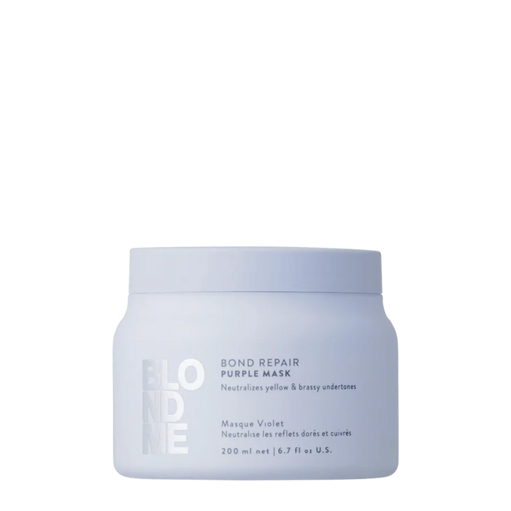 Schwarzkopf BLONDME Bond Repair Purple Mask 200ml is designed to neutralize yellow undertones while preventing brassiness. This mask not only nourishes the hair but also focuses on maintaining your blonde clarity without altering your natural hair color.