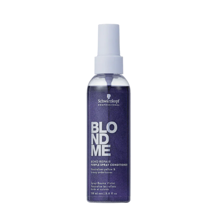 Schwarzkopf BLONDME Bond Repair Purple Spray Conditioner 150ml is designed to neutralise yellow undertones while effectively preventing brassiness, making it an essential product for maintaining vibrant blondes. This innovative spray conditioner offers a multitude of benefits for your hair.