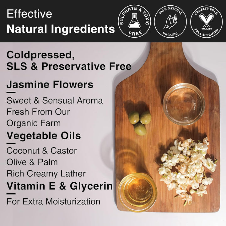 Indulge in a luxurious bathing experience with SoulFlower Creamy Moisturizing Jasmine Soap, a handmade, cold-processed bar infused with the calming essence of jasmine and nourishing oils. Crafted with a blend of natural ingredients, this soap gently cleanses while deeply moisturizing your skin, leaving it soft, radiant, and delicately scented. Ideal for daily use, itโs a perfect blend of skincare and aromatherapy.