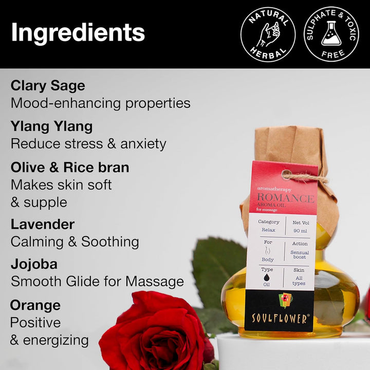 SoulFlower - Romance Aroma Massage Oil for Stress Relief and Relaxation | 90ml