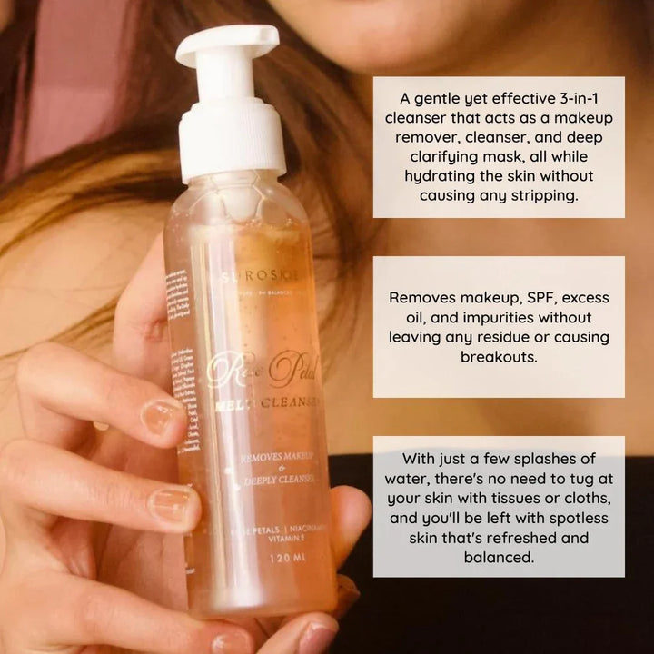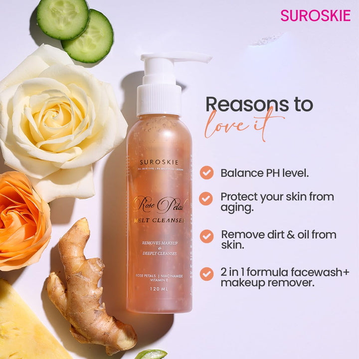 Suroskie - Rose Petals Melt Cleanser | 2 In 1 Hydrating cleanser Removes Makeup & Deeply Cleanses | 120ml