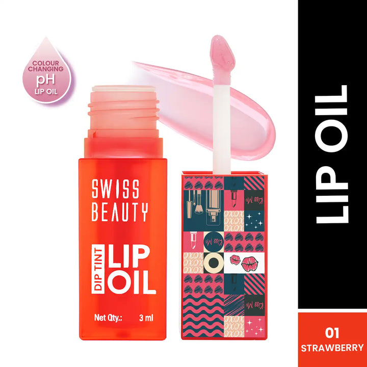 Indulge in the luxurious hydration of Swiss Beauty Dip Tint Lip Oil - Shade No. 01 Strawberry, a pH-reactive lip oil that enhances your natural lip color while providing deep nourishment. Infused with Vitamin E, this lightweight formula glides effortlessly, leaving your lips soft, supple, and beautifully tinted. Whether you're looking for a sheer glow or a subtle pink tint, this lip oil adapts to your lips' pH level for a personalized shade.