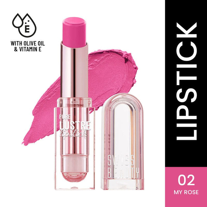Swiss Beauty Pure Lustre Lipstick - Shade No. 02 My Rose is available at Kess Hair & Beauty Online Store, ensuring easy access to premium beauty products. Get yours today and experience intense hydration, rich color payoff, and a flawless finish.