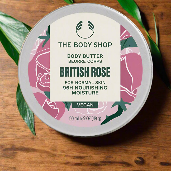 Indulge in The Body Shop - British Rose Body Butter 50ml, a luxuriously creamy body moisturizer designed to nourish, hydrate, and soften your skin for up to 96 hours. Infused with English rose extract, Community Fair Trade shea butter from Ghana, and sesame seed oil from Nicaragua, this vegan-friendly body butter provides deep hydration while leaving your skin with a natural glow and a delicate floral scent.