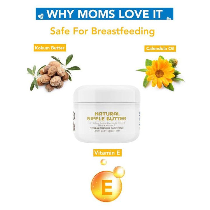 Is this nipple cream safe for breastfeeding? Yes, it’s made with baby-safe ingredients and doesn’t need to be wiped off before feeding.