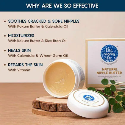 Gentle care for your most delicate moments. The Moms Co. Natural Nipple Cream is a lanolin-free, fragrance-free, and toxin-free formula specially crafted to soothe sore, cracked, or dry nipples during breastfeeding. Enriched with Kokum Butter, Calendula Oil, Coconut Oil, and Natural Vitamin E, this cream provides instant relief and long-lasting hydration—safe for both mom and baby.