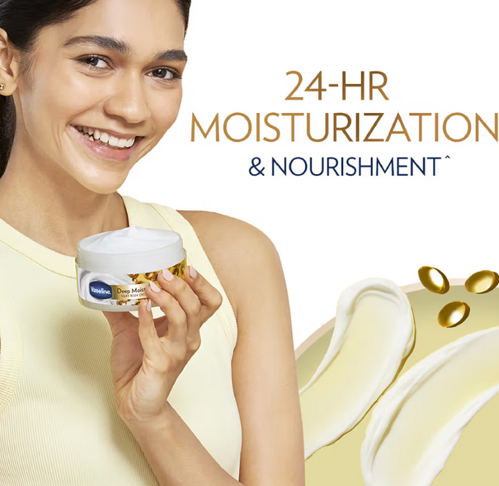 Vaseline Deep Moisture Silky Body Cream is the ultimate remedy for skin that needs serious nourishment. Whether you're combating winter dryness, recovering after exposure to harsh conditions, or simply wanting to indulge in a luxurious skincare ritual, this body cream delivers on all fronts. Its fast-absorbing, deeply moisturizing formula ensures your skin remains soft, smooth, and protected all day long, leaving you with a beautiful, healthy glow.