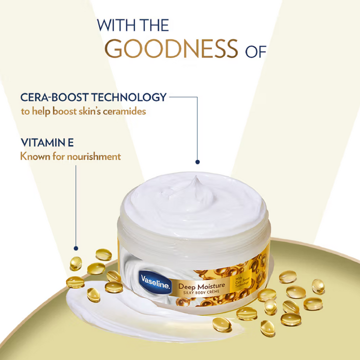 Vaseline Deep Moisture Silky Body Cream 180 g is available at Kess Hair & Beauty Online Store. Enjoy a secure online shopping experience with fast, reliable delivery directly to your doorstep. Elevate your skincare routine with this premium body cream and discover the secret to beautifully hydrated, silky-soft skin every day.