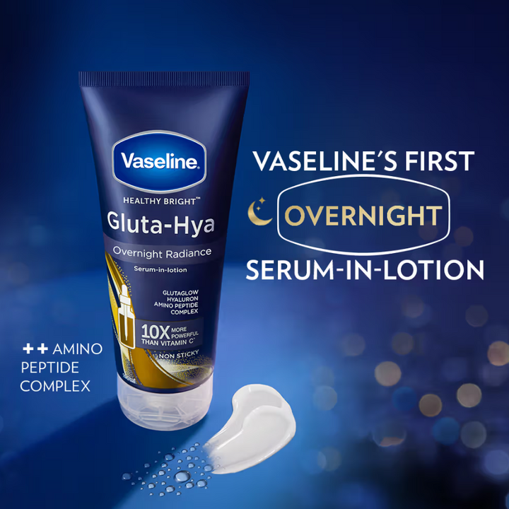 What is Vaseline Gluta-Hya Overnight Radiance, Serum-In-Lotion designed for? It’s an overnight treatment formulated to hydrate, brighten, and rejuvenate your skin while you sleep.