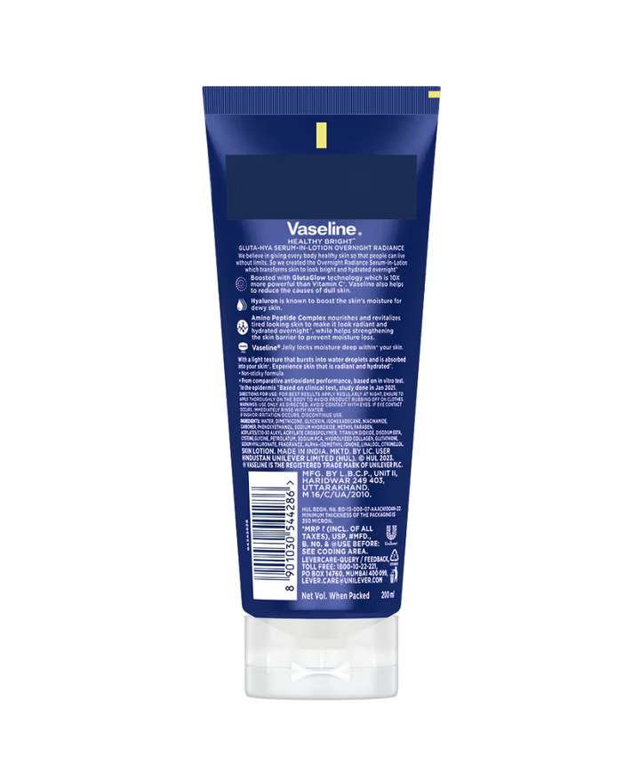 Vaseline Gluta-Hya Overnight Radiance, Serum-In-Lotion, With Amino Peptide And GlutaGlow 200ml
