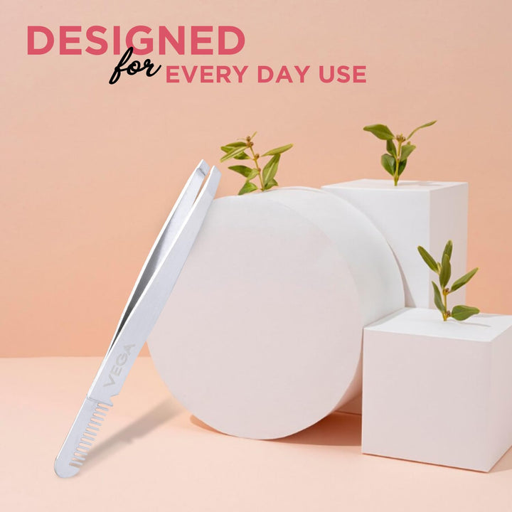 Vega is a trusted name in grooming tools, known for combining innovation with quality. The TWE-01 Brow Groomer & Tweezer is a smart, space-saving solution for anyone who wants perfectly shaped brows without the hassle of multiple tools. Its dual-ended design and precision tip make it a must-have for your beauty kit.