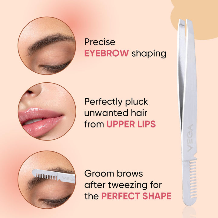 Vega – 2 In 1 Brow Groomer & Tweezer (TWE-01)