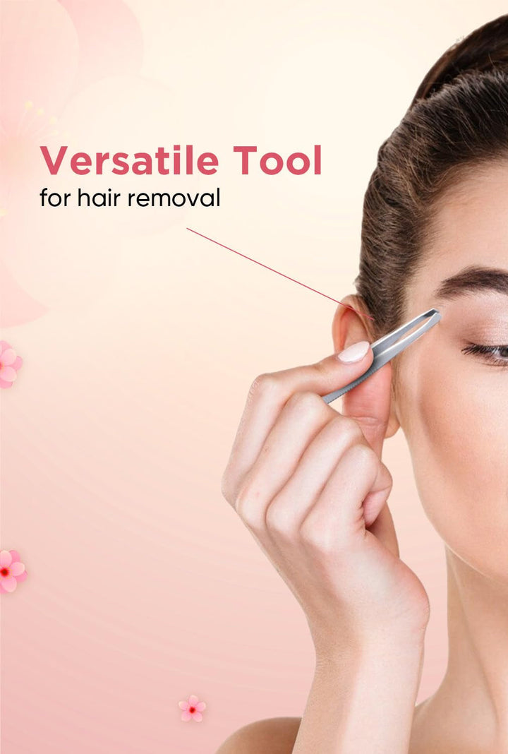 What makes the square tip effective? It provides a firm grip for removing coarse or short hairs.
