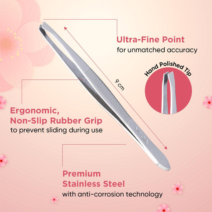 The Vega Tweezer Square Tip – TW-01 is a classic grooming essential designed for precise and effortless hair removal. Crafted from high-quality stainless steel, this tweezer features a hand-filed square tip that is perfectly aligned to grip even the shortest or coarsest hair. Whether you're shaping your eyebrows or removing stray facial hair, the TW-01 offers professional-level accuracy with a comfortable grip, making it ideal for both personal and salon use.