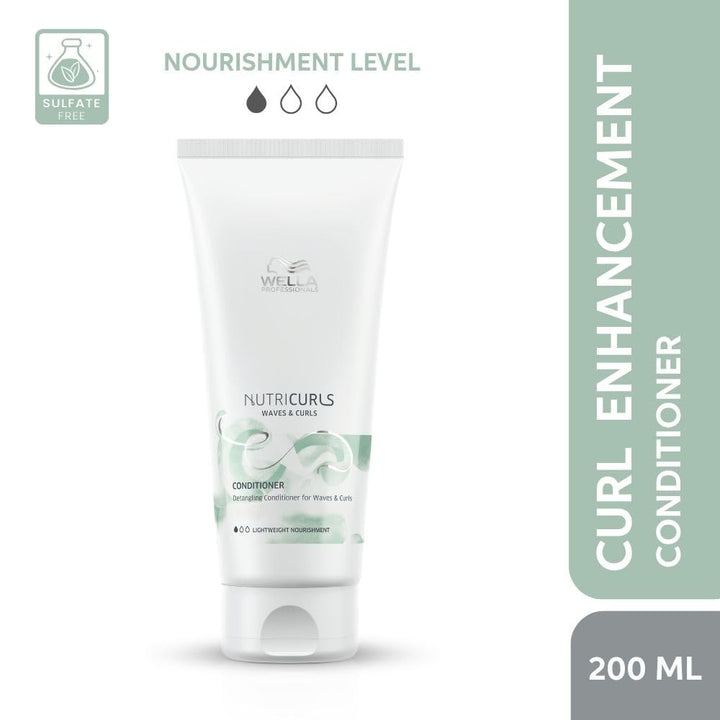 Nourish your curls. Define your waves. Wella Professionals Nutricurls Conditioner is a lightweight, detangling conditioner specially formulated to enhance the natural beauty of wavy and curly hair. Powered by the Nourish-In Complex with Jojoba Oil, Panthenol, and Wheat Bran Extract, this conditioner delivers the perfect balance of moisture and definitionโleaving your curls soft, bouncy, and frizz-free without weighing them down.