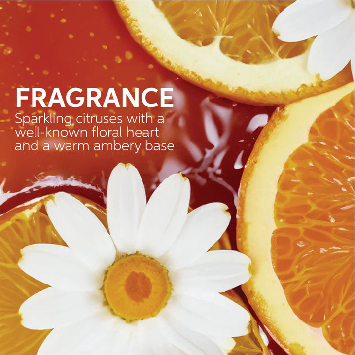 Floral bouquet fragrance with notes of jasmine, vanilla, bergamot, peach & sandalwood